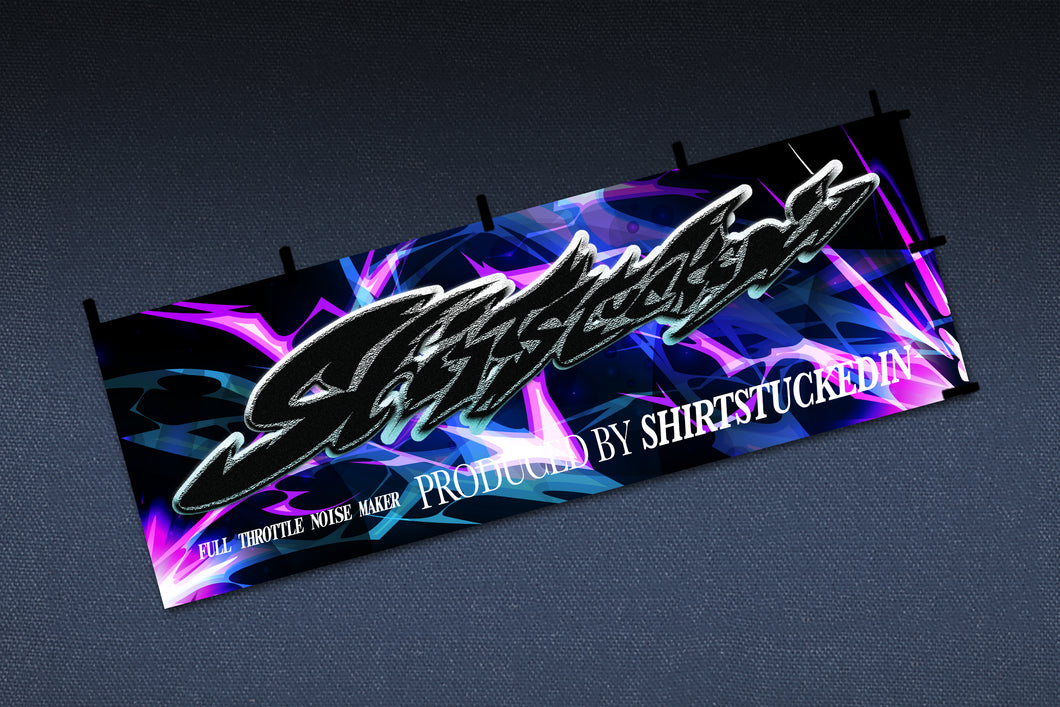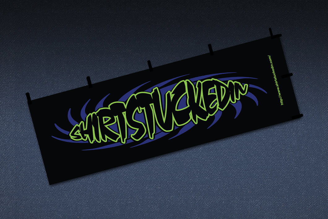 Full sized 60 x 180 CM SHIRTSTUCKEDIN nobori flags perfect for inside or outside your office & garage.